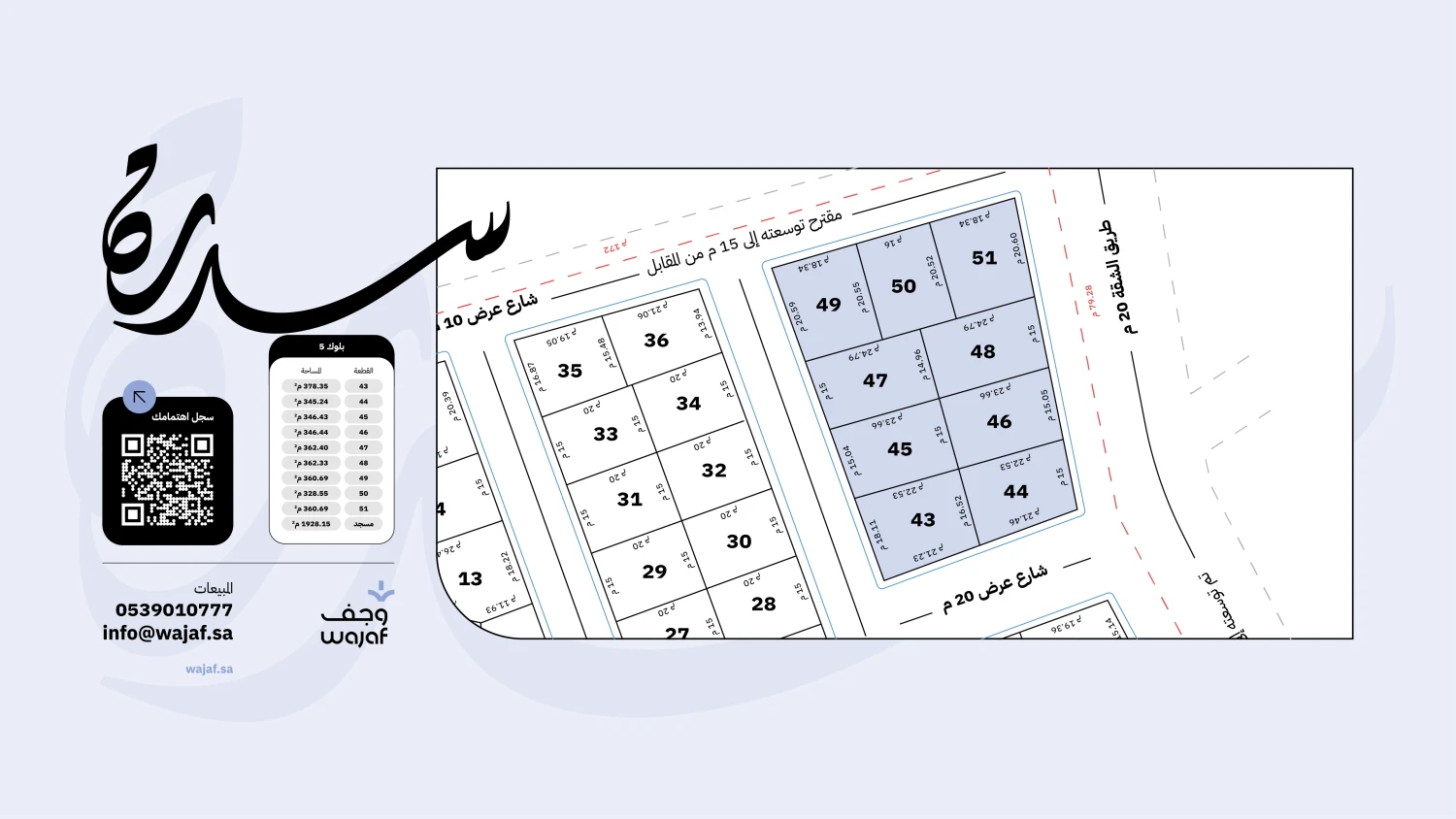 قطعة رقم 51, تأتي هذه القطعة داخل مخطط سدرة المميز بالصك الإلكتروني والإفراغ الفوري والبنية التحتية المتكاملة والقطع المحدودة التي تجعل منه بيئة مثالية ومستقبل واعد..